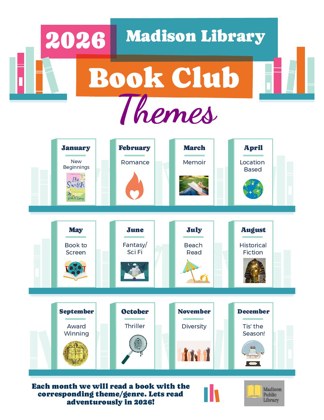 Madison Book Club: Monthly discussions on the last Wednesday of the month at 6:00pm