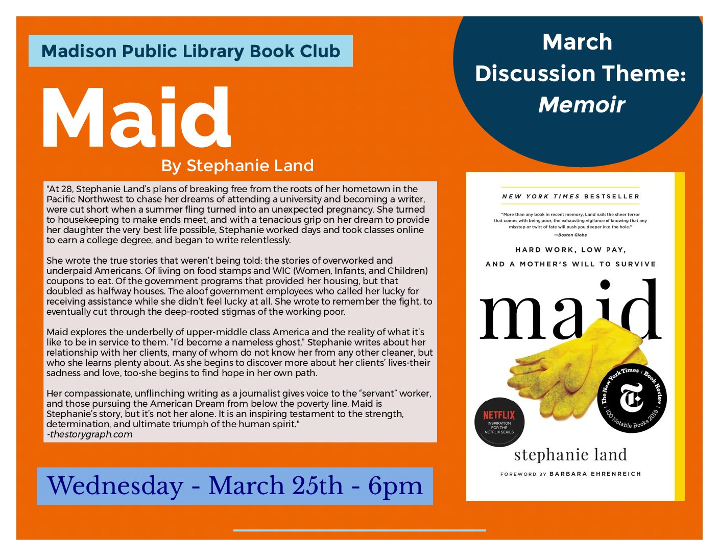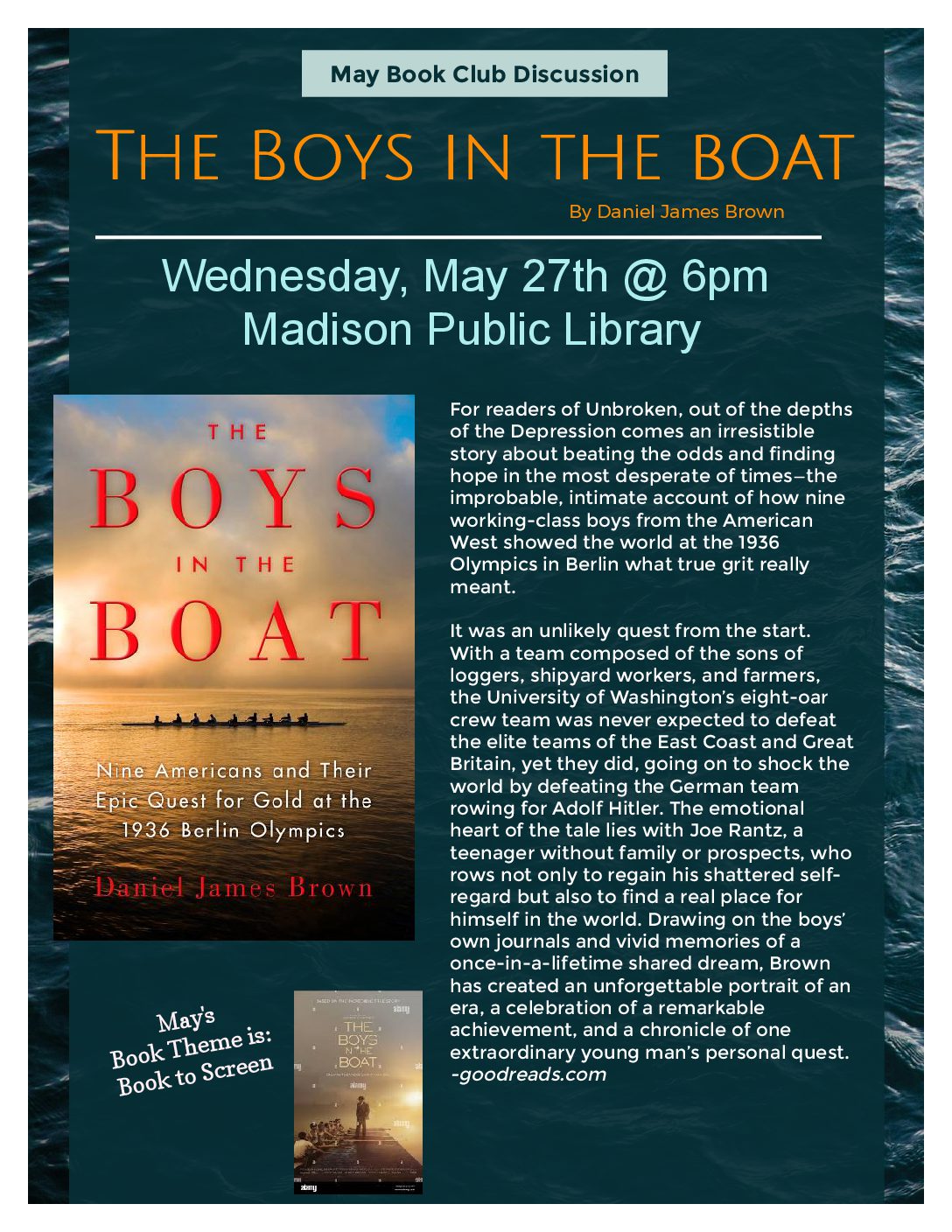 Madison Book Club: Monthly discussions on the last Wednesday of the month at 6:00pm